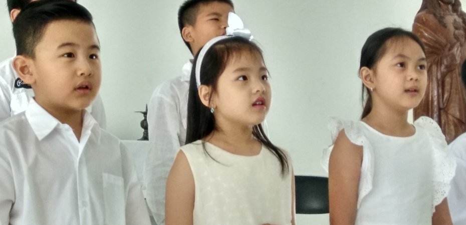 Vox Angelix performed in front of altar of First Communion Mass at Stella Maris Catholic Church, Pluit, Jakarta. A beautiful song by John Rutter – I Will Sing with the Spirit was sung as a gratitude to this Sunday Mass. Children were happy, passionate, and full of spirit. Enjoy this beautiful voices from our children. Put on your earphone and enjoy typical children high notes. God bless.
